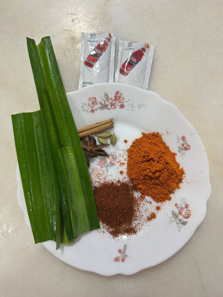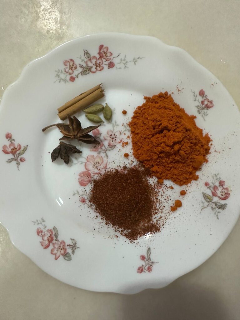 3 sekawan; 1 inci kulit kayu manis, 2 biji pelaga dan 1 1/2 bunga lawang