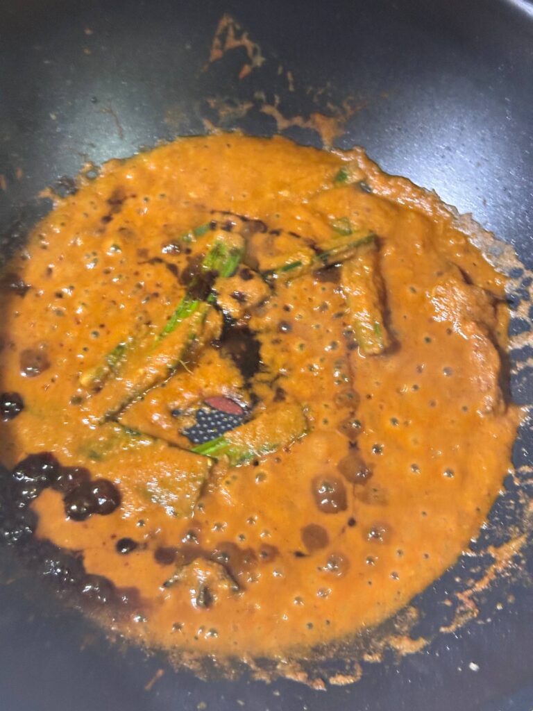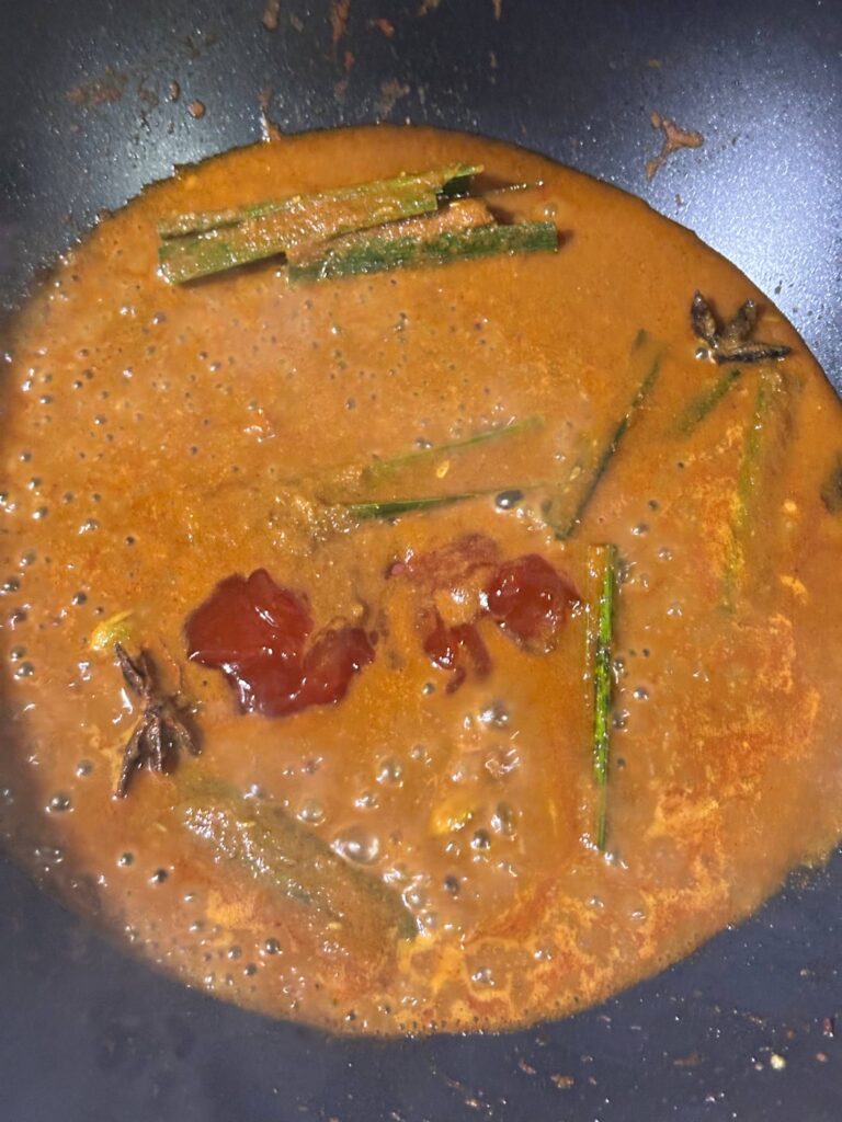 Segelas air untuk bagi tumisan kuah mesra dan dapatkan teksture serbuk kari dan cayenne halus.